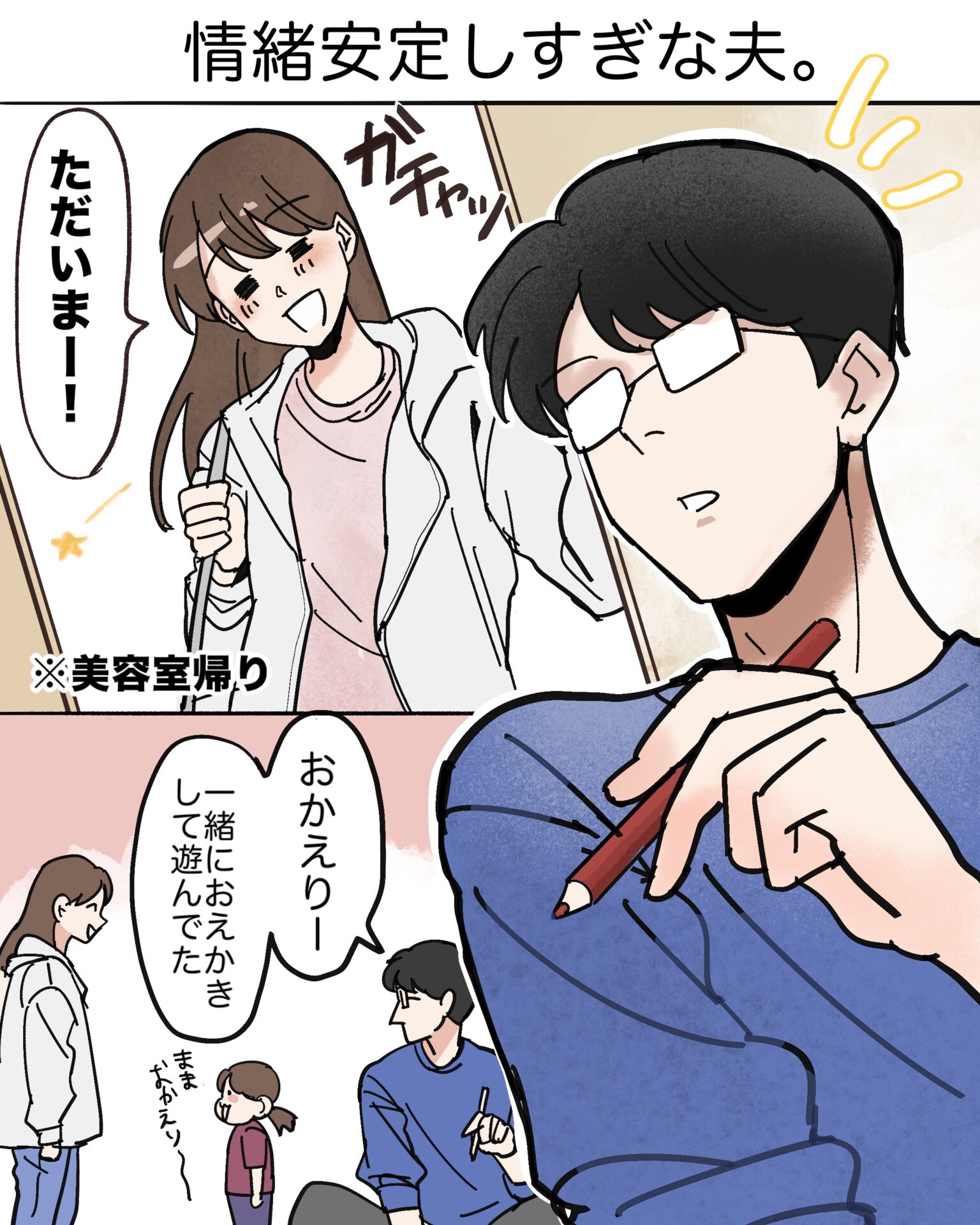 スポンサーリンク おすすめ記事出産よりも産後が辛い。〜新生児編〜1産後はすぐに歯科検診へ!1情緒安定しすぎな夫。トイトレ諦めました。4母親だけど人付き合いが苦手すぎる!13 情緒安定しすぎな夫。 2025.10.12 スポンサーリンク あとがき! むちゅめが産まれた時も 初めて歩いた時もなんか こんな顔してた気がする。 夫は私と違って 滅多に物事に感銘を受けない。 感情がないわけではないんだけど 表に出すのが苦手らしい笑 ポーカーフェイスでたまに何考えてるか わからないけど、 声を荒げたり不機嫌になったりすることもなく、 ある意味疲れないので 敏感で心配性な私とは相性があっている👍 11