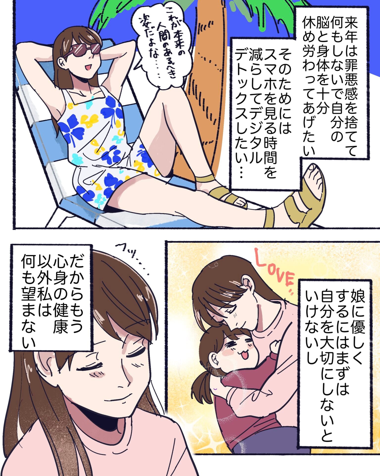 来年は休める時は休んで自分の体と心を大事にしてあげたいな…。