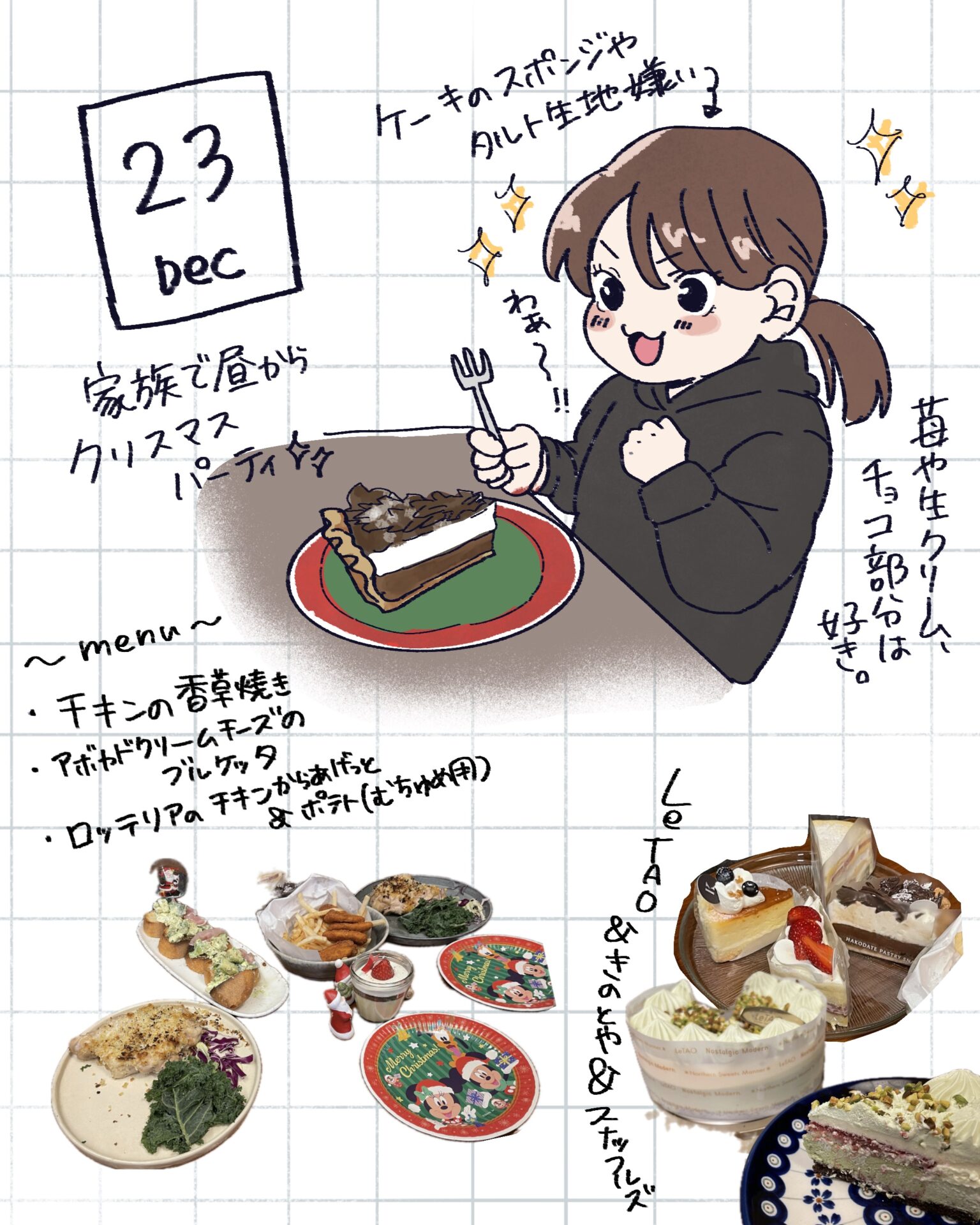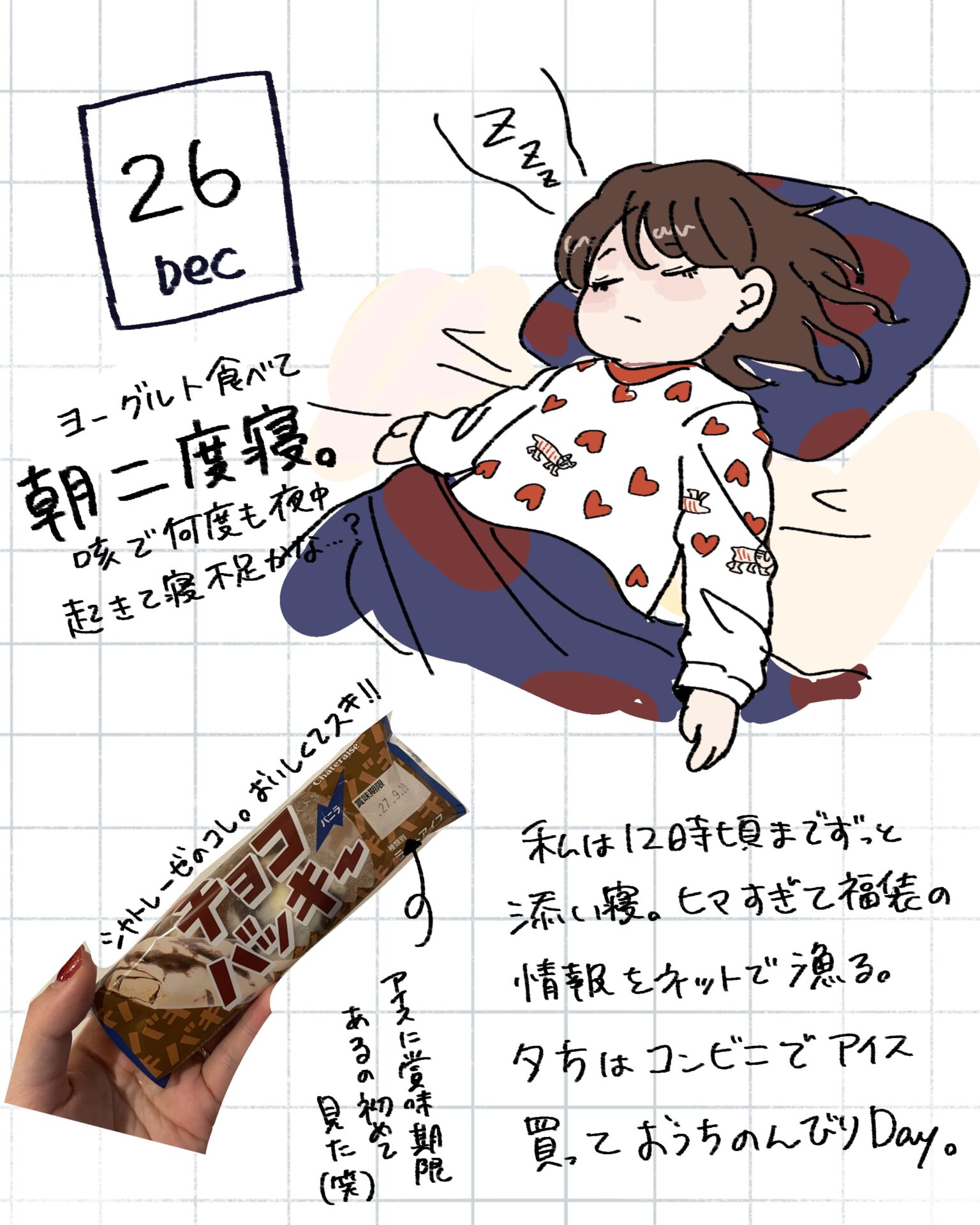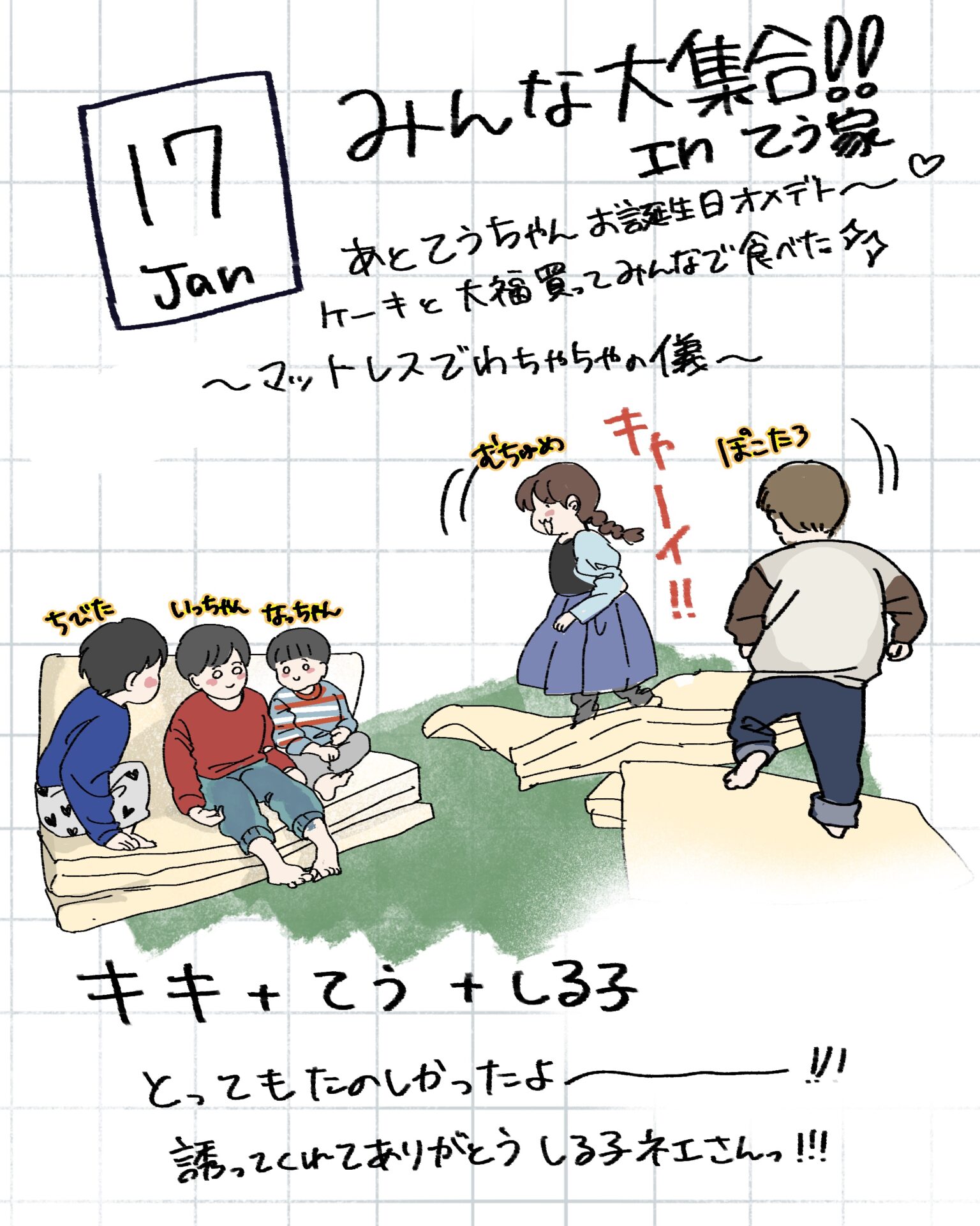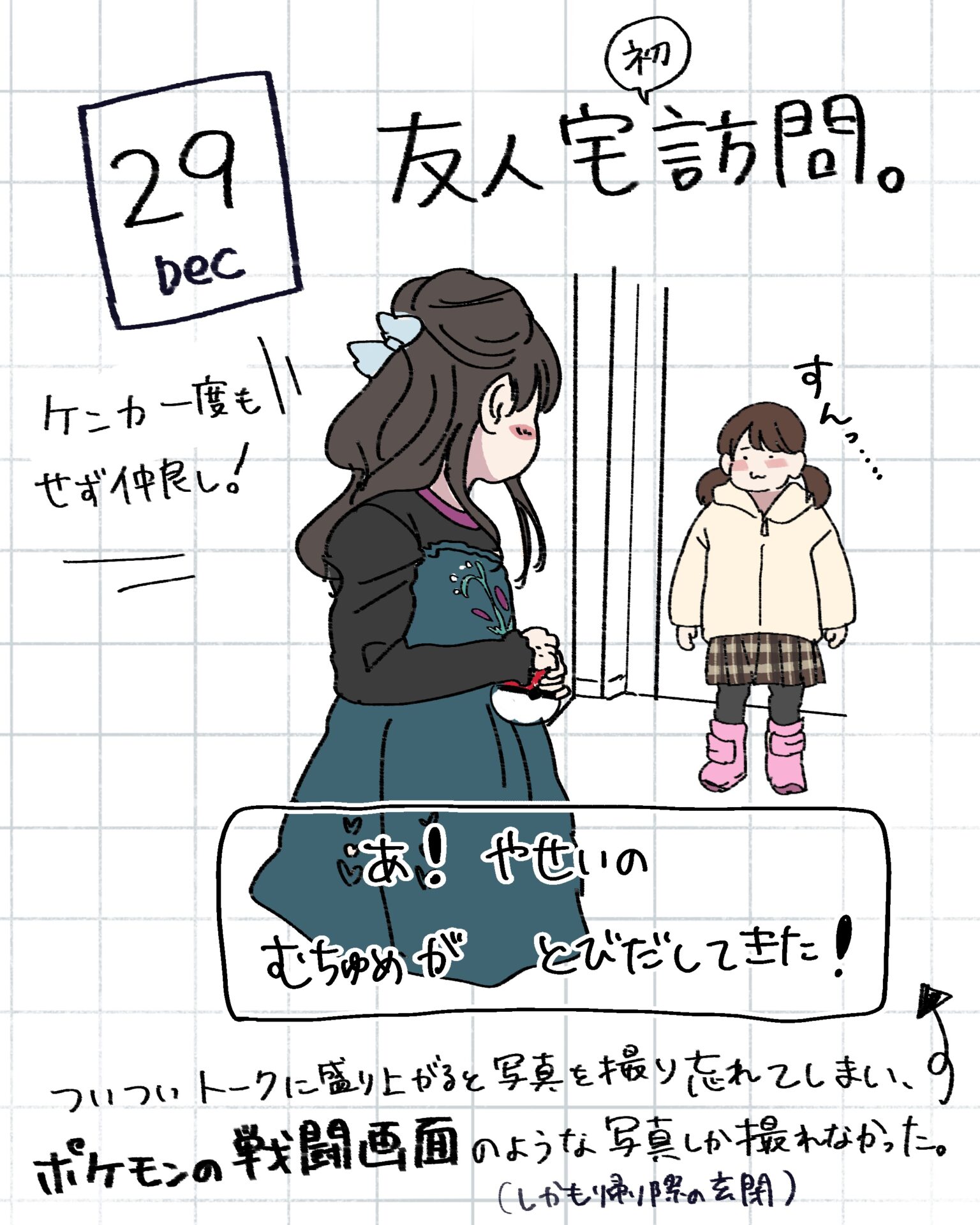 スポンサーリンク おすすめ記事出産よりも産後が辛い。〜新生児編〜1産後はすぐに歯科検診へ!1むちゅめのふゆやすみ。〜絵日記まとめ〜3歳娘とおかいもの。⑤終3歳娘とおかいもの。④ むちゅめのふゆやすみ。〜絵日記まとめ〜 2026.01.20 スポンサーリンク 冬休みに描いた落書き絵日記をまとめたので よかったら見てやってくださ〜い! 間違えて1/1の絵日記を消してしまいました…泣 特に旅行とか遠出はしていないのですが、 近場で遊んだり友人と会ったり 1ヶ月は楽しくてあっという間に終わりました! 毎日は描けなかったけど何気ない日常を できるだけ残せたのでよかったよかった! 広告 広告 広告 広告 2